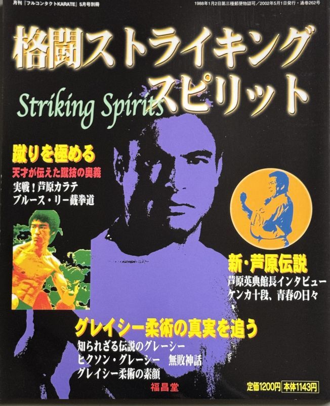 ■当店倉庫から発見された2002年当時の国内書籍。月刊「フルコンタクトKARATE」2002年5月号別冊。極真カラテ、グレーシー柔術、芦原空手などとともにブルース・リーのジークンドーテクニックも紹介されています。状態は新品同様。