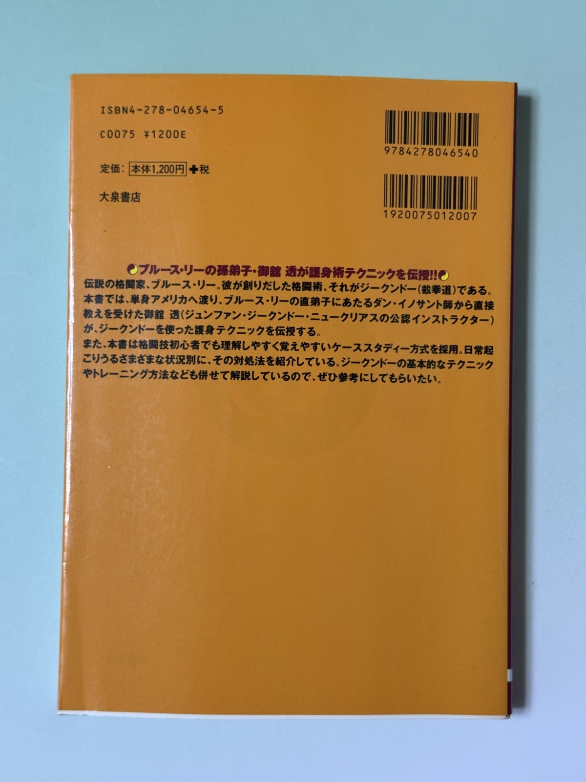 ■倉庫から発掘した1990年代のジークンドー関連書籍。ブルース・リーの孫弟子、御館透が護身術テクニックを伝授!巻末には当時、ミタチJKDアカデミーが扱っていたブルース・リーグッズカタログを掲載。