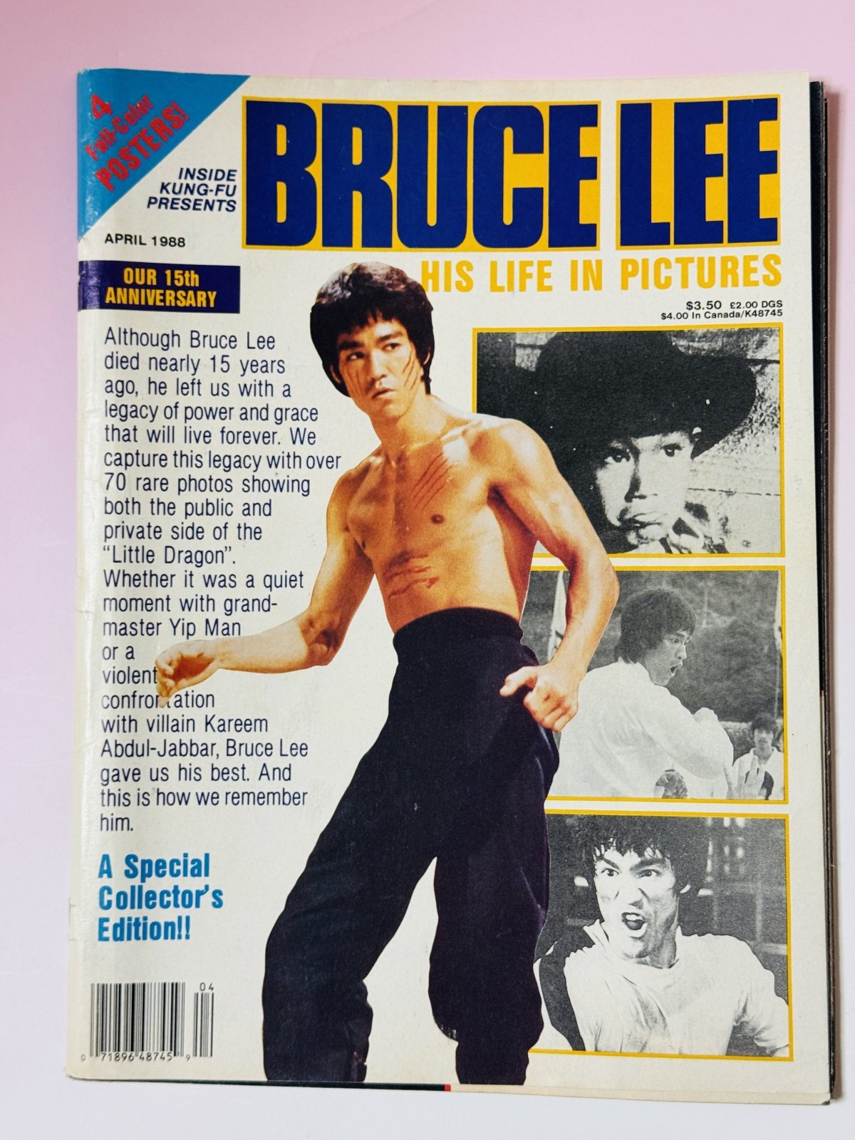 ■店長がまたまた倉庫から発掘した当時モノはアメリカ格闘技雑誌INSIDE KUNG-FU の別冊ブルース・リー特集号。写真で見るブルース・リーの生涯。今見ても珍しい写真があります。全体として良好な状態。綴じ込み付録ポスターは本誌から外れていますが、ちゃんとそろっています。