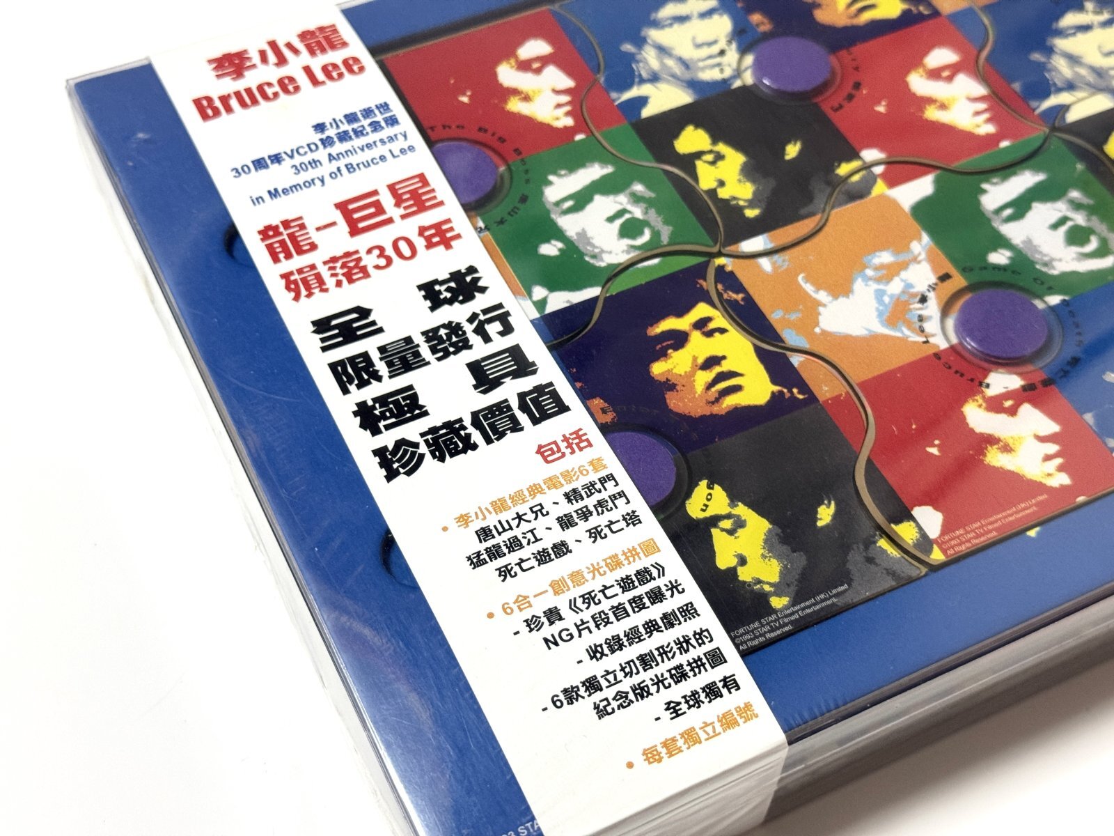 ■21年前、2003年7月に発売された香港のVCD18枚セット。カラフルで凝ったパッケージは当時、開封をためらった人も多かった・・・そして当時、皆がびっくりした「死亡遊戯」初公開映像がオマケで付いていたのだ!奇跡的に一点だけ残っていた未開封品。
