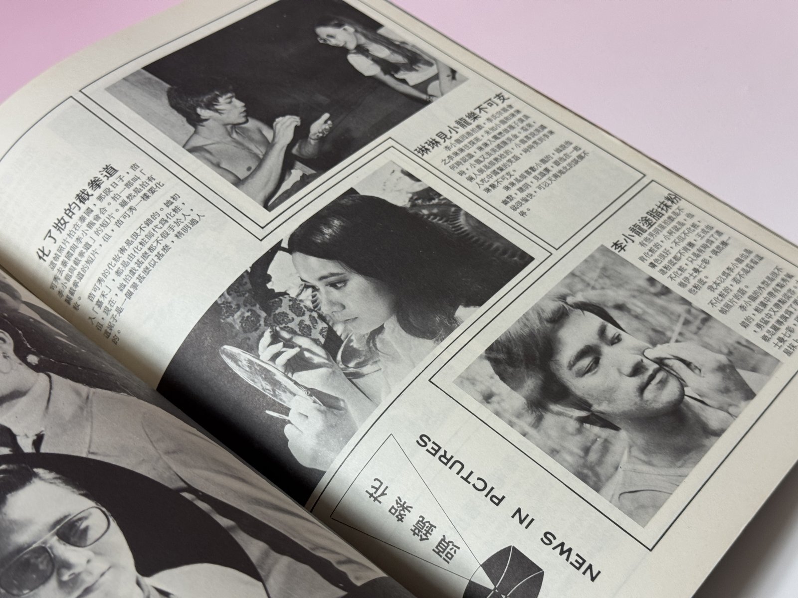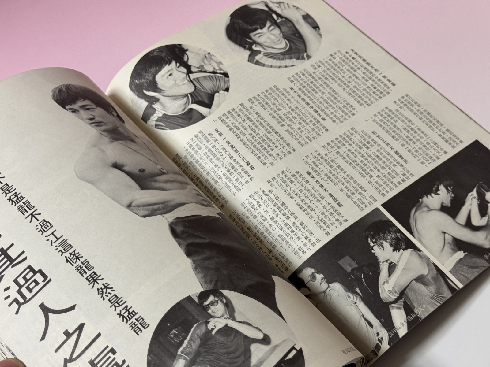 ■ゴールデンハーベスト社のゴールデンムービーニュースと並んで香港の映画雑誌の代表といえばこの國際電影。その1971年11月号、つまりブルース・リーの生前に出版された数少ない映画雑誌のひとつがこれです。さすがにゴールデンムービーニュースに比べるとブルース・リー関連記事は少ないものの、時期的には『ドラゴンへ危機一発』公開の頃なので関連記事4ページのほか若干ページにリーさんが登場、『ドラゴン危機一発』広告ページもあります。古い割に状態は良好です。