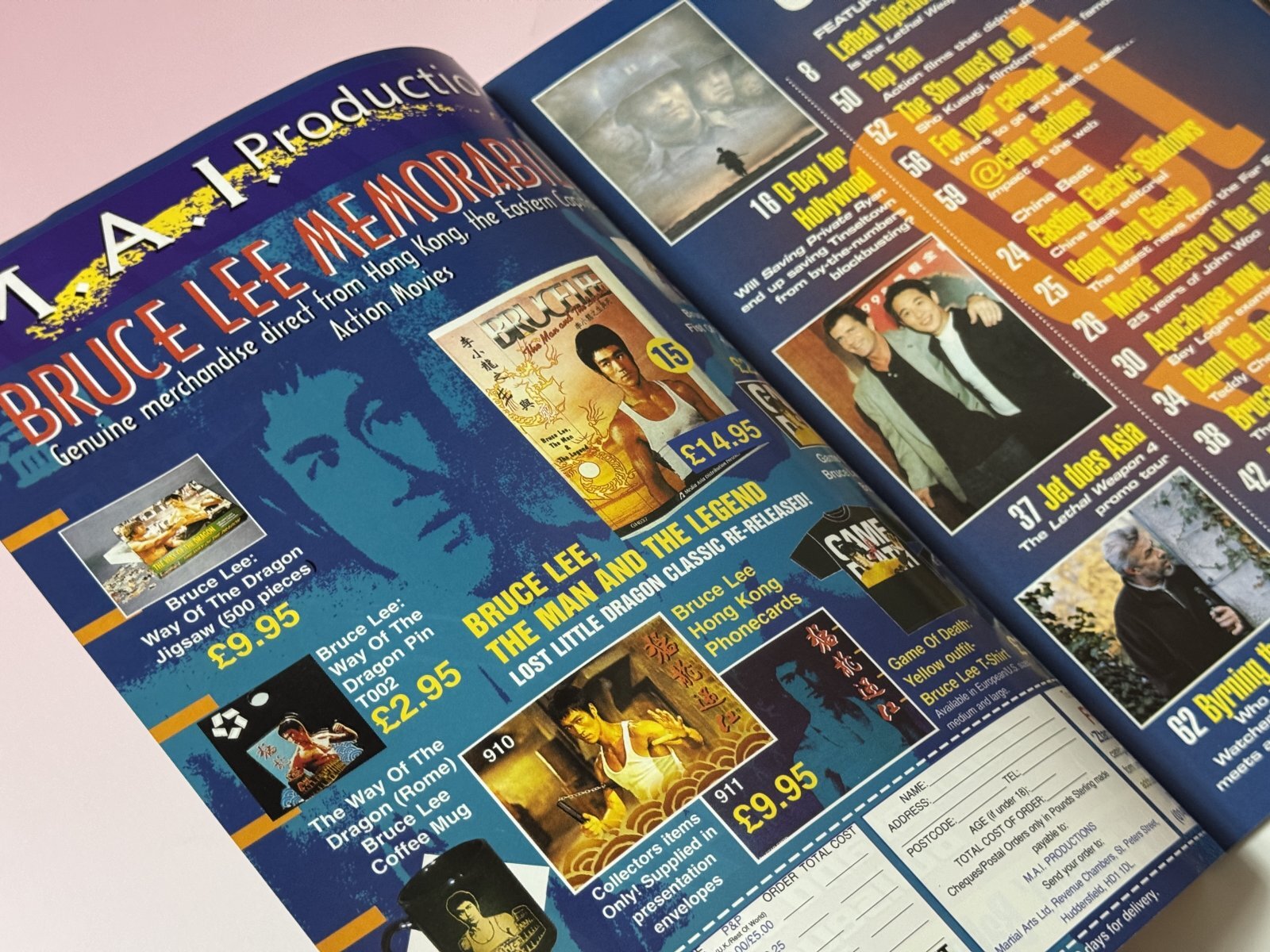 ■1990年代当時の英国の映画雑誌。アクション映画専門で当時、盛り上がってきたブルース・リーブームから関連記事のほか、各所にブルース・リーフィギュアやビデオの広告が掲載されているのも見ていて楽しい。アジアアクション映画の美女を特集したポスターマガジン付き。