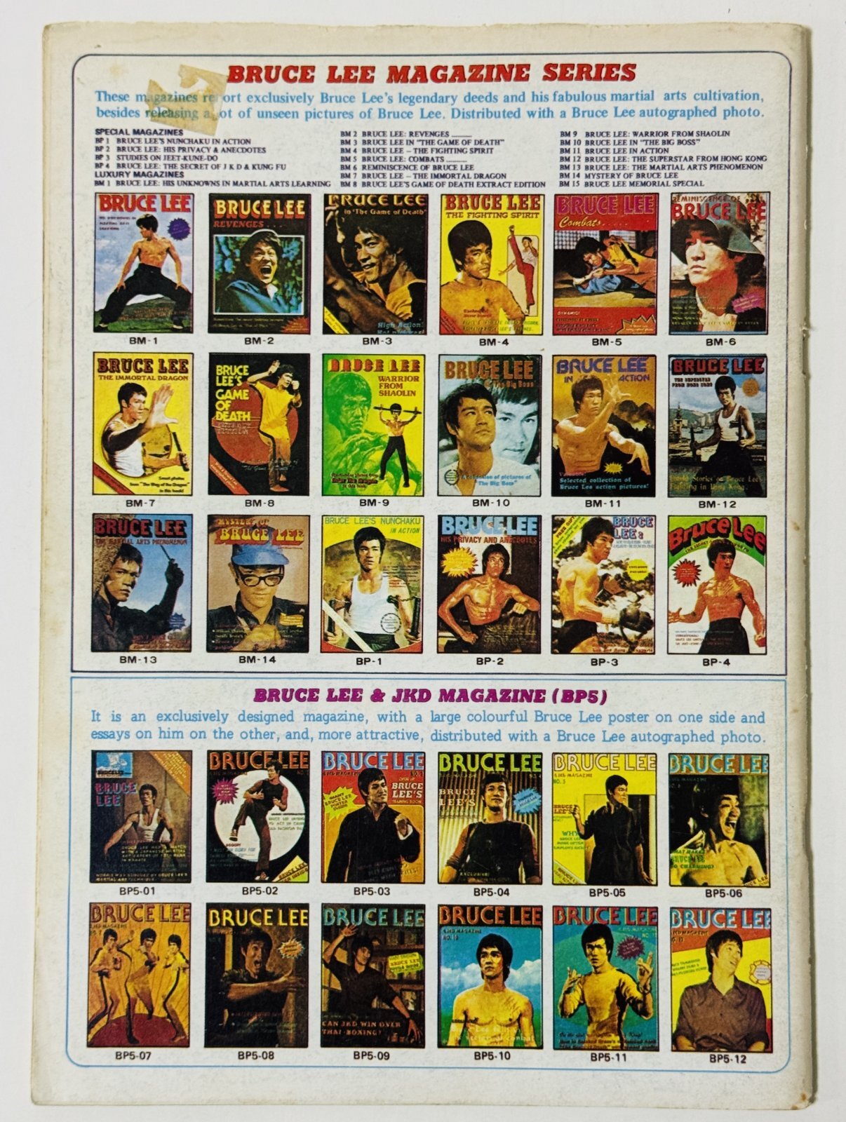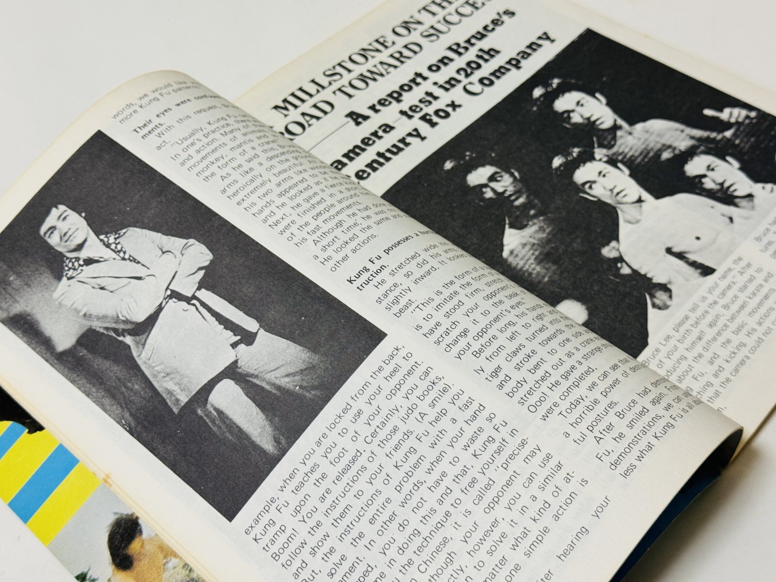 ■店長がまたまた倉庫から発掘した当時モノ。李小龍截拳道研究学会による英語版書籍、BPシリーズの一冊でカラーページもあり。ちらほらと珍しい写真が載っているのがこういった当時モノのうれしいところ。古いものなので表紙にシワやヨレなどありますが中は良い状態です。