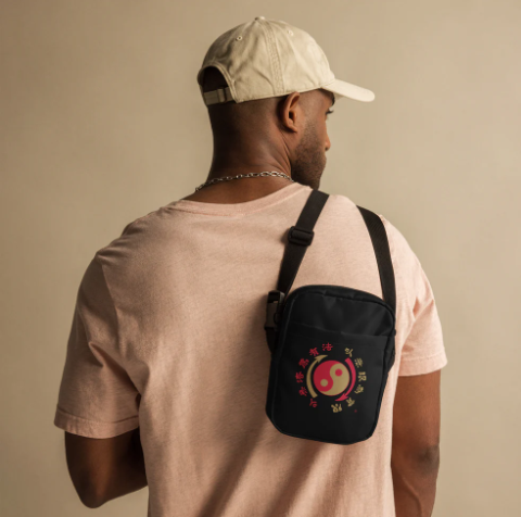 ■ブルース・リーのシンボルといえばこの陰陽マーク=コアシンボル。そのブルース・リーを象徴するマークをあしらったデザインで作られたボディにフィットするクロスボディバッグの登場だ。