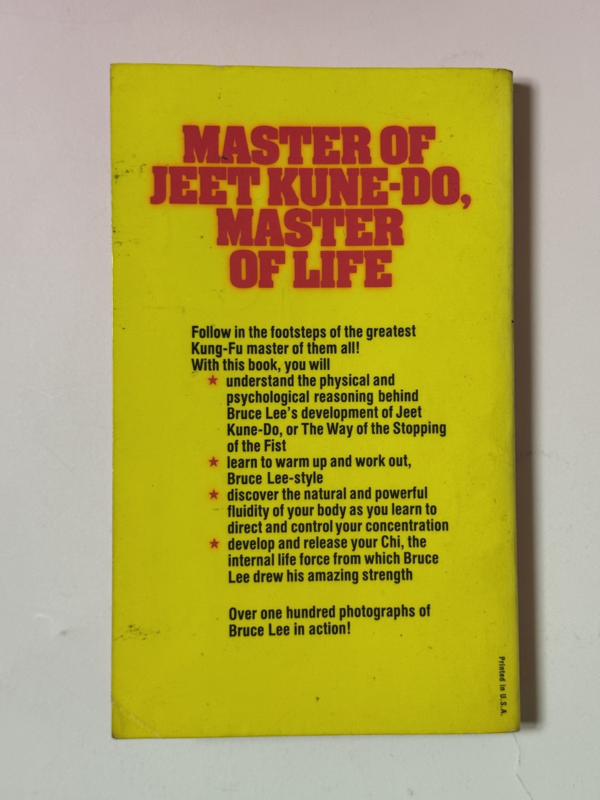 ■本日入荷!ブルース・リー関連書籍の中でも名著として人気の高い書籍。格闘技トレーニング教則本のようなタイトルですが、中は写真集かと思われるようなほぼ写真ばかりのような内容。しかもその写真の多くが当時、初見のものばかりで店長も初めて手にした時には驚いて腰が抜けそうになりました。そんな幻の当時本。まだ手に取っていない方にはお勧めです。USED品で前所有者により表紙全体がビニールコーティングされています。それ以外の状態は大変良好です。