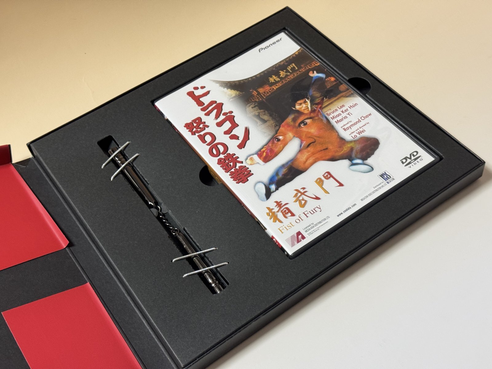 ■当店倉庫からまたまた発掘されたのは、今では廃盤で入手困難なDVD。これは日本国内で初めて発売された『ドラゴン怒りの鉄拳』だったような・・・・原版は香港製ながらDTS音声収録、ピクチャーレーベル特製ボックス仕様とかなり気合の入った製品でした。さらにミニチュアマスコットヌンチャクに書き下ろし解説書まで付属。開封済みのUSED品で状態はまあまあ。盤面も良好ですが再生すると特典映像部分に若干のノイズなどが見られます。あくまでも資料的価値としてご了承ください。
