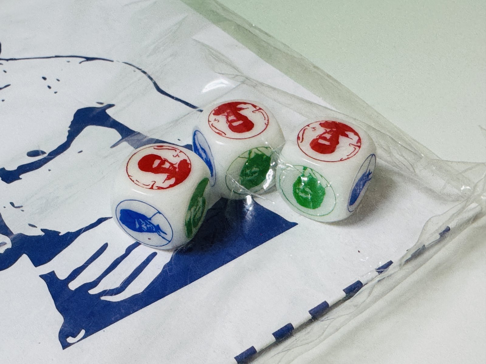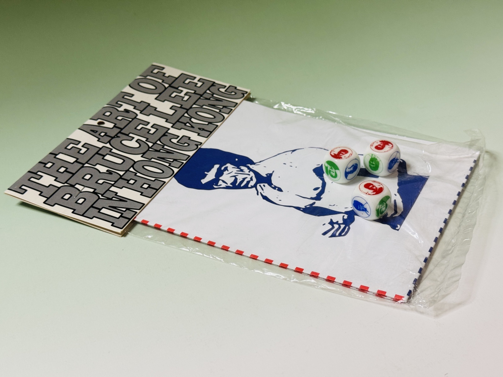 ■倉庫から出てきた香港みやげのたぶん無版権もの。内容はサイコロ3個。サイコロ面には数字の目の替わりにブルース・リーイラスト、そしてなぜか『燃えよドラゴン』オハラのイラストが。中には謎のシートが入っていて、やはりブルース・リーらのイラストが印刷されています。未開封のため内容は確認できず。遊び方も不明のマニア向けグッズ。