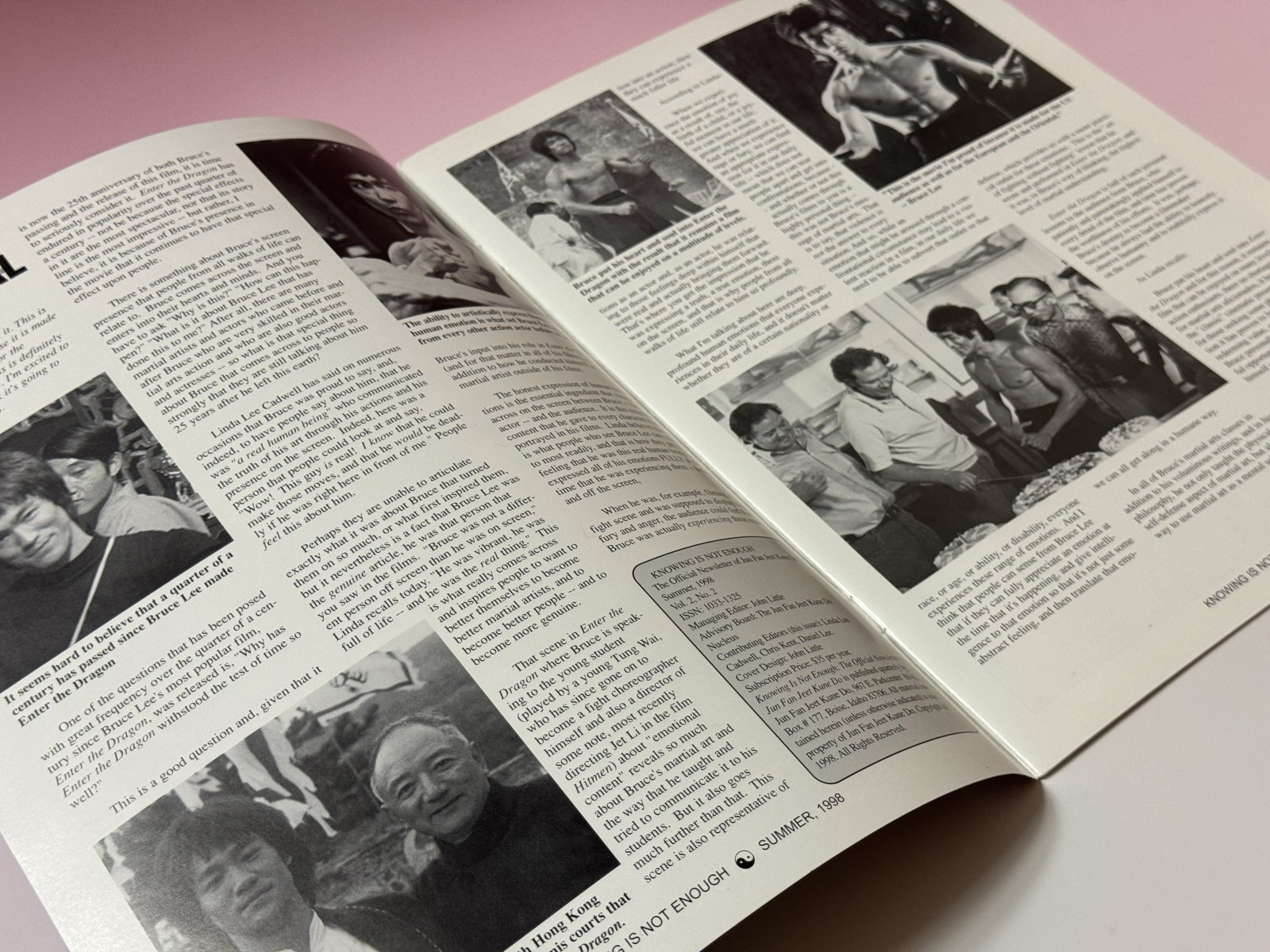 ■かつて発行されていたブルース・リー教育財団の機関誌。タイトルはブルース・リーの残した言葉からとられたもの。今では入手困難なこのシリーズのデッドストックが一冊だけ、倉庫から発見されました。 さすが本家の出版だけに写真はとてもクリア、掲載された資料もリーさん直筆モノも含めて非常に価値の高いものです。ページ全体から誠実さと気品、オーラが感じられる、そんな機関紙です。こんな冊子はもう二度と発行されないでしょう。