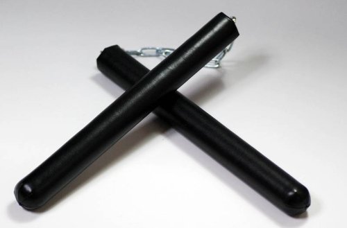 ■映画「燃えよドラゴン」で我々が初めて目撃した衝撃のウェポン、ヌンチャク。あのシンプルな漆黒の武器は強烈な印象を残しましたね。あの日、あの空間で遭遇したあのヌンチャクを独自の解釈でハンドメイドしたレプリカヌンチャクの最新モデルです。素材はプラスティックパイプをクッション材で巻き、映画の中のあのツヤを再現した黒合皮レザー生地仕上げ。つなぎ部分には鎖、ナスカンを使用。ミシン縫製および一部は接着材でつくられたオールハンドメイドです。